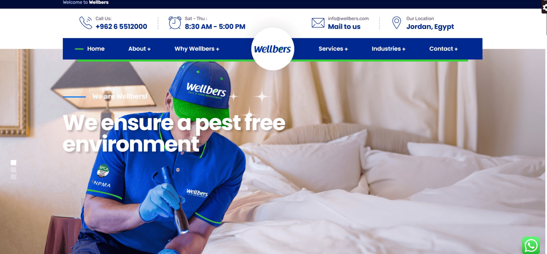Wellbers Pest & Germ Management is a professional pest-control and hygiene company providing reliable disinfection and prevention services. Their website was built on WordPress, featuring a premium theme installation, full content setup, and performance-focused configuration to reflect the brand’s clean and trustworthy image.